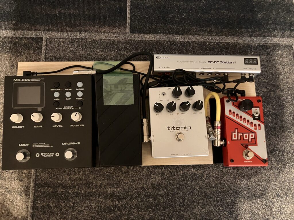実際使ってみると割と使い勝手が良くて重宝している桐ボード。そんなわけで今回は自分のエフェクターボードを紹介していく