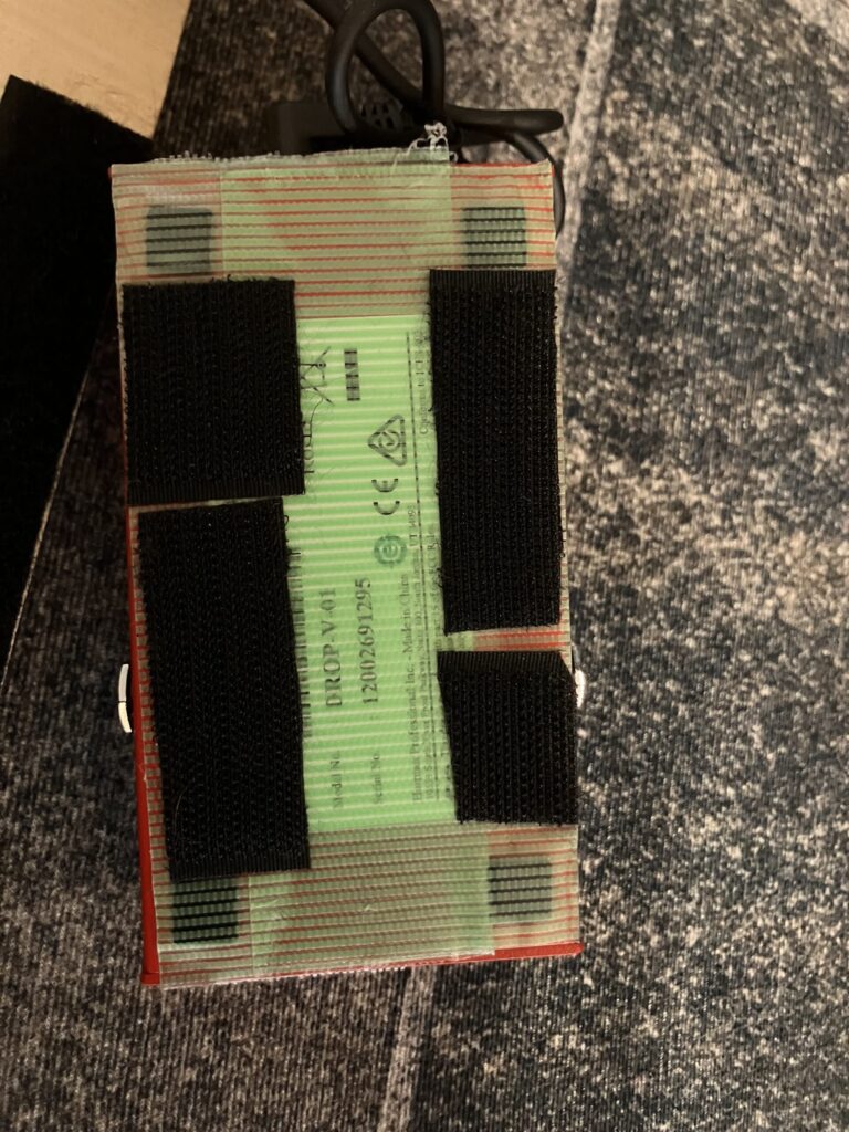 位置が決まったらエフェクターの裏面に養生テープを貼って塗装面を保護する。次に養生テープの上にマジックテープを貼りつける