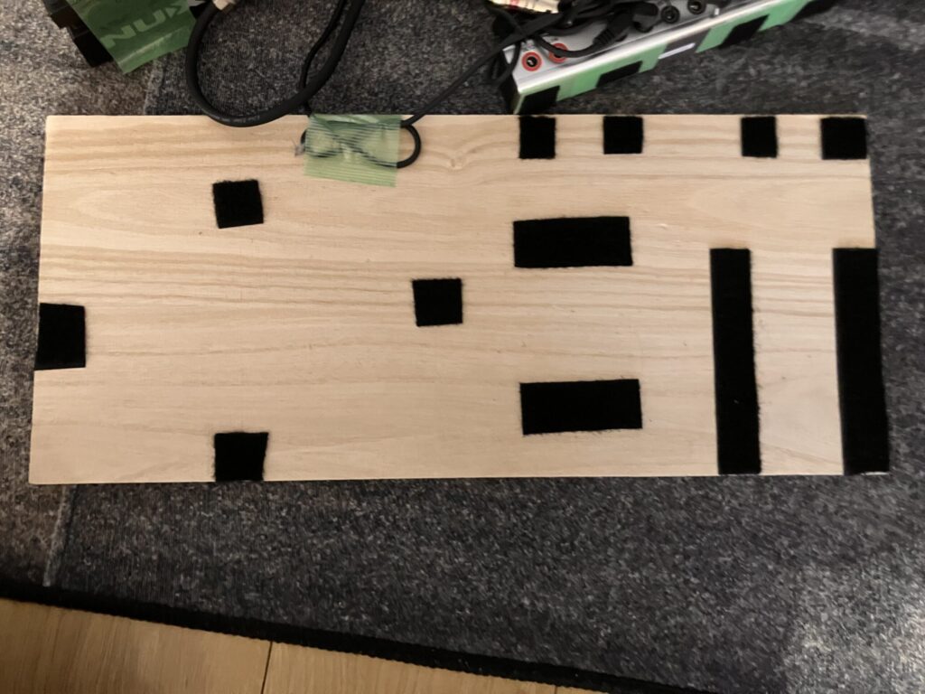 まず最初に桐板の上に貼り付けたいエフェクターを置いて位置決めする
